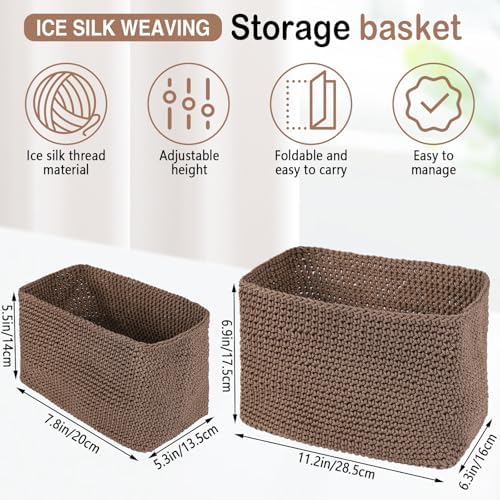 Decorative Ice Silk Thread Storage Basket, Crochet Organizer Container, 2 Piece Set